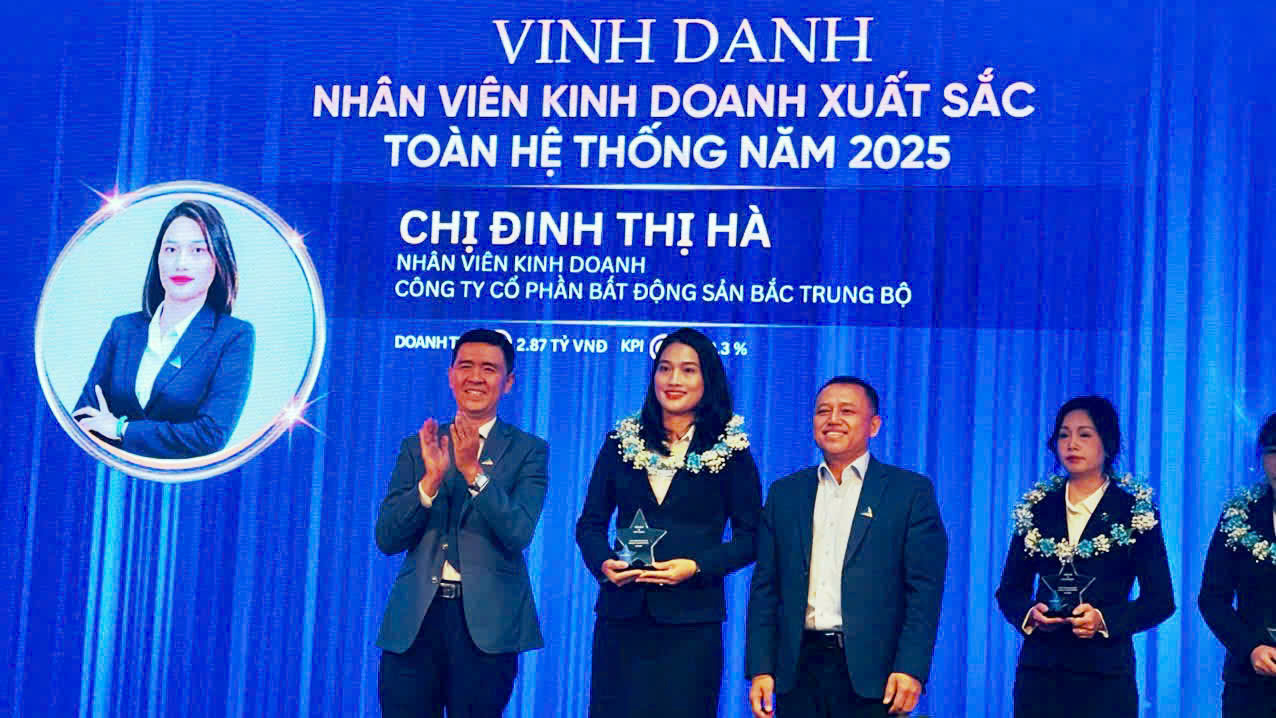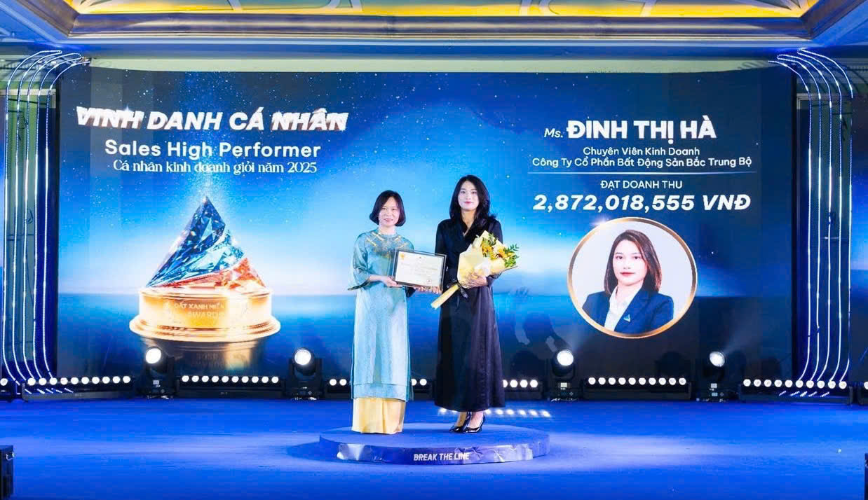 Ghi dấu ấn mạnh mẽ trong năm 2025, Đinh Thị Hà tự hào là chiến binh duy nhất của Đất Xanh Bắc Trung Bộ được vinh danh là nhân viên kinh doanh xuất sắc nhất toàn hệ thống của Đất Xanh Group.